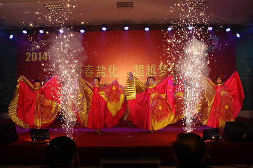 泰山鹽化公司由職工自編自導的新春鹽化、超越夢想2014年新春文藝節目在該公司上演。新巨龍公司員工自編自導的群舞《咱們工人有力量》傳遞了礦工迎難而上的不屈精神。華豐煤礦充分發揮廣大團員青年的業余愛好和特長,組織青年書法愛好者為全礦各單位、退休老黨員及外出創業家庭寫送春聯。短短兩天時間就寫送春聯220余副。泰興物業公司組織單位書法愛好者走上街頭,免費為廣大社區業主寫春聯、送祝福。活動中,該公司職工認真咨詢業主對物業服務的建議和意見,為2014年更好的服務社區奠定了基礎。