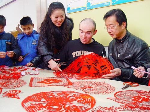 中國的新春佳節(jié)將到,淮北市教育局組織該市的一些留守兒童并邀請了外籍教師戴維開展了學(xué)習(xí)傳統(tǒng)文化,迎接新春佳節(jié)的剪紙活動(dòng)。讓外籍教師感受中國傳統(tǒng)文化的魅力,讓外籍教師感受中國四海一家的博大胸懷。