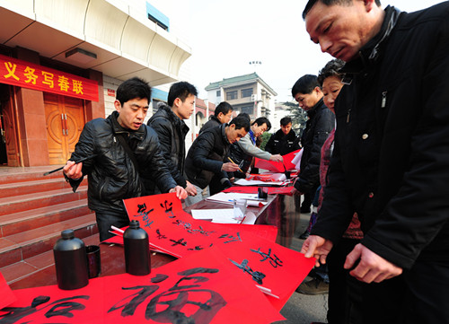 淮北礦業集團朱莊煤礦為礦工義務寫春聯 來源:淮北礦業集團朱莊煤礦 作者:陳召松 時間:2014-01-30 【字體:小 大】 1月28日上午,安徽淮北礦業朱莊煤礦工會、團委在該礦工業廣場開展義務寫春聯活動,來自生產一線單位的10多名書法愛好者不畏嚴寒,揮毫潑墨,把一副副帶著暖意與墨香的春聯送到礦工及家屬手中,為節日的礦山增添了一份喜慶祥和的氛圍。 智能標簽: 淮北礦業集團 朱莊煤礦 相關內容 分享到: 【打印正文】