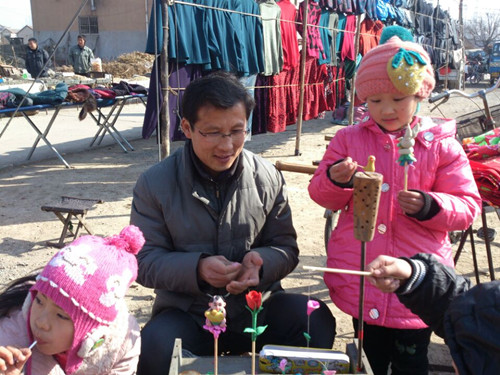 新巨龍公司員工展示“面塑”技藝 來源:山東能源新礦集團公司報社 作者:李毅 秦軍義 墨言 時間:2014-02-11 【字體:小 大】 春節休假之際,山東能源新巨龍公司員工司永強帶著對傳統民族文化的熱愛和濃濃的鄉土情結,在集市上展示自己的面塑才藝,免費教兒童捏面人。圖為司永強在集市上擺攤展示面塑技藝。 分享到: 【打印正文】