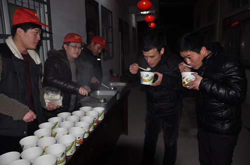 師傅,祝您元宵節快樂!師傅,在井下干活一定要注意安全!元宵佳節來臨之際,淮北礦業工程建設公司團委組織青年志愿者開展送湯圓囑平安活動,為一線職工送上一碗暖暖的湯圓,送上一句溫馨的安全祝語,使節日期間堅持在工作崗位的職工感受到組織貼心的關懷和溫暖。