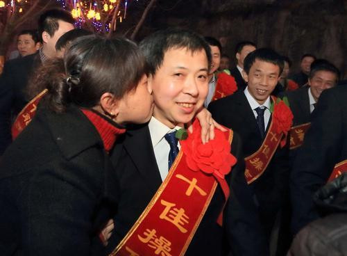 雙節晚上,該礦工會舉辦鬧元宵頒獎晚會。開幕式舞蹈《喜慶鑼鼓》結束后,十佳技術能手、二十佳班組長、五十佳操作能手紛紛登臺亮相。突然間,一名女士直奔舞臺左側而去,緊緊抱住身披五十佳操作能手綬帶的鄧中華說:老公,祝你情人節快樂。