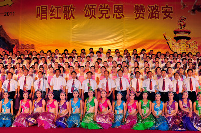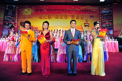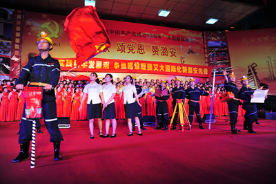 今年是中國共產黨建黨90周年,七一節,山西潞安礦業集團黨政工主要領導同萬名礦工舉行唱紅歌、頌黨恩、贊潞安大型一歌詠晚會。晚會分《東方紅》、《祖國頌》、《繼往開來》、《走向復興》四個篇章。來自基層31個單位盡情謳歌中國共產黨建黨的豐功偉績。《沒有共產黨就沒有新中國》、《社會主義好》、《咱們工人有力量》等一首首歌頌黨、歌頌祖國、歌頌人民的不朽歌曲,讓現場觀眾心潮澎湃,如潮的掌聲經久不息;一首首奮發向上的革命歌曲表達了潞安人對共產黨的無限熱愛之情,展現了礦工朝氣蓬勃、積極向上的精神風貌。