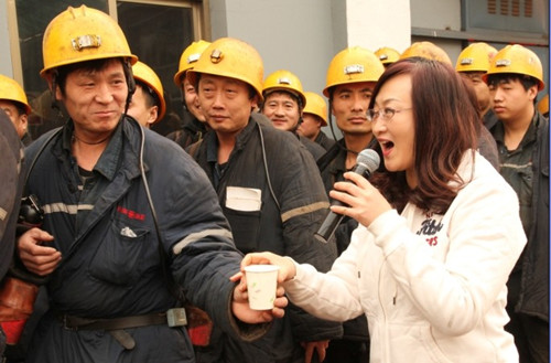 演出的最后,演員們將一首《最可愛的人》奉獻給礦工,他們來到井口前,向已經排好長隊,即將下井的礦工獻上一杯杯熱茶。寒冷的冬天,一首歌曲,一杯熱茶,溫暖了礦工的心。正在準備下井的礦工接過熱茶對演員說道:你們的演出真貼心,最好能夠天天演,看了這樣的節目再下井心里就有了勁兒,也不那么累了!