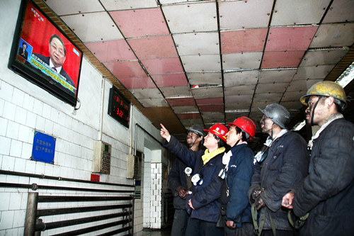 皖北煤電礦工井口看兩會期待中國“好聲音”