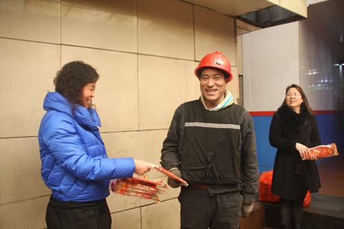 硯北煤礦開展“三八”井口送溫暖活動 來源:硯北煤礦黨群工作部 作者:史玉英 時間:2014-03-06 【字體:小 大】 三八婦女節來臨之際,甘肅華煤集團硯北煤礦女工委組織10多名女工及家屬到南風井快速行人通道口,把一雙雙女工親手縫制的繡有安全平安幸福吉祥等字樣的平安鞋墊送到礦工手中。 分享到: 【打印正文】