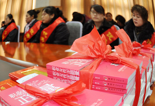 3月6日,安徽淮北礦業朱仙莊礦工會女工部正在為女工班組贈書。