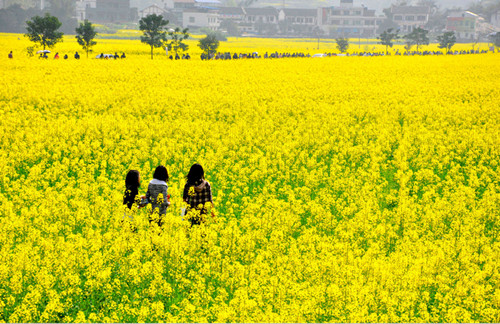 在礦區(qū)油菜花田里,嫩黃、鵝黃、明黃、金黃,枝干碧綠,迎風(fēng)招展,空氣里彌漫著花香和草香,沁人心脾。礦區(qū)的職工家屬呼朋喚友、攜妻帶子,伴著春天的花香,沐浴著和煦的陽(yáng)光,在油菜花間輕松愉快地踏青漫步,盡情享受大自然的恩賜。花海意境加野趣妙意,令人流連忘返。