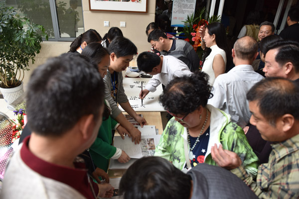 開幕式由中國(guó)平煤神馬集團(tuán)美術(shù)書法協(xié)會(huì)會(huì)長(zhǎng)牛皓宇主持。出席本次展覽活動(dòng)的領(lǐng)導(dǎo)和嘉賓有:國(guó)家民政部社區(qū)發(fā)展中心常務(wù)副理事長(zhǎng)兼主任黃啟安;民盟河南省委專職副主委柳鋒波;中國(guó)煤礦文聯(lián)美術(shù)家協(xié)會(huì)主席吳鳳儀;中國(guó)平煤神馬集團(tuán)黨委副書記、副總經(jīng)理張友誼;平頂山市委宣傳部副部長(zhǎng)左玉坤;中國(guó)平煤神馬集團(tuán)組織部部長(zhǎng)王明安;中國(guó)平煤神馬集團(tuán)組織部副部長(zhǎng)買智勇;中國(guó)平煤神馬集團(tuán)工會(huì)副主席、文聯(lián)主席張帆;河南省美協(xié)副主席、民盟河南省委書畫院院長(zhǎng)李健強(qiáng);中國(guó)煤礦工筆畫院名譽(yù)院長(zhǎng)宋偉儀;中共平頂山市委統(tǒng)戰(zhàn)部副部長(zhǎng)趙永紅;平頂山民盟市委主委楊延鈞;平頂山市文聯(lián)副主席范大嶺;平頂山市文聯(lián)秘書長(zhǎng)趙小永;平頂山市僑聯(lián)書記雷鄢平;平頂山市人大書畫院院長(zhǎng)、市書協(xié)主席菅智民及平頂山市委統(tǒng)戰(zhàn)部各民主黨派的領(lǐng)導(dǎo),以及其它各地市、縣區(qū)代表及媒體朋友們。
