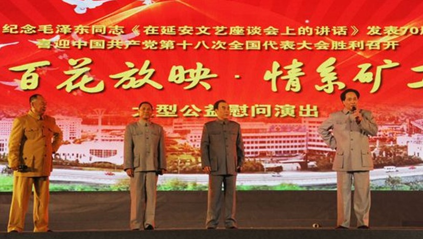6月28日晚,在紀(jì)念毛澤東同志《在延安文藝座談會(huì)上的講話》發(fā)表70周年,喜迎建黨91周年和黨的十八大召開(kāi)之際,由中國(guó)文聯(lián),中國(guó)影協(xié),山西省文聯(lián)和西山煤電集團(tuán)公司聯(lián)合舉辦的百花放映情系礦工大型公益慰問(wèn)演出暨西山煤電集團(tuán)公司紀(jì)念建黨91周年、創(chuàng)先爭(zhēng)優(yōu)活動(dòng)黨風(fēng)廉政建設(shè)表彰大會(huì),在西山煤電集團(tuán)隆重舉行。
