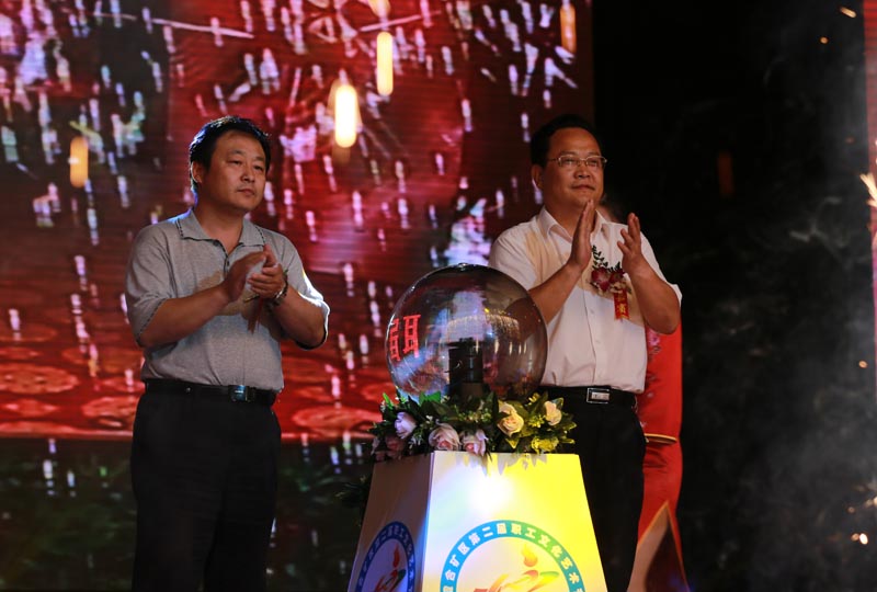 陜煤化集團(tuán)公司黨委副書記、工會(huì)主席馬富元與中國(guó)煤礦文聯(lián)秘書長(zhǎng)張強(qiáng)共同啟動(dòng)藝術(shù)節(jié)水晶球