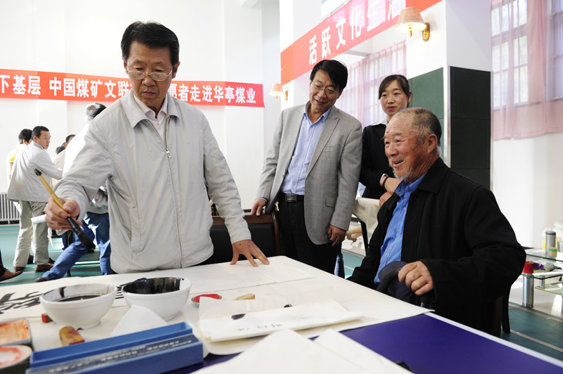 5月23日至26日,在第四個“5?23”中國文藝志愿者服務日期間,中國煤礦文聯文藝志愿者服務隊赴甘肅華亭煤業集團開展“到礦工中去”文藝志愿者服務活動。志愿者服務隊由中國煤礦文聯副主席兼秘書長張強帶隊,中國煤礦文聯副秘書長、《陽光》雜志社社長兼主編、中國煤礦書協副主席盛軍,中國煤礦文聯特邀副主席、中國煤礦書協副主席田靖安,中國煤礦書協副主席王懷罡,中國煤礦書協副主席、中國煤礦美協國畫藝委會副秘書長馬銘,中國煤礦書協副秘書長張宏武、楊玉劍,中國煤礦美協理事仲立,甘肅省煤礦作協執行主席劉振華等共10人組成。煤礦文藝志愿者們深入礦區生產一線,與礦區職工面對面交流,向書畫愛好者作一對一創作輔導,針對礦區職工不同文化需求,開展了書法、文學講座,書畫創作輔導、作品贈送等志愿服務。