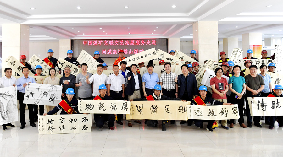 5月23日至24日,在第五個“中國文藝志愿者服務日”期間,中國煤礦文聯組織文藝志愿者到山西大同煤礦集團開展了為期兩天的文藝志愿服務活動。中國煤礦文聯副秘書長、中國煤礦文聯書協副主席兼秘書長盛軍帶隊,中國煤礦文聯宣傳處副處長辛凡忠,中國煤礦文聯書協副主席馬銘、副秘書長杜占存、理事楊玉劍和中國煤礦文聯美協副主席陶亞力參加了文藝志愿服務。期間,文藝志愿者和同煤集團黨委常委、工會主席蔣煜,同煤集團文體發展中心主任、文藝志愿者協會主席楊占先等先后分別在塔山煤礦、晉華宮礦和同煤集團黨校進行了書畫篆刻作品贈送、創作交流筆會和書法藝術講座等文藝志愿服務活動,受到了礦區職工群眾的熱烈歡迎。