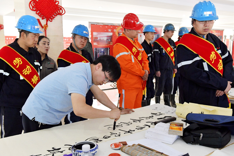 “今天我們安排了基層的5名書法家來到現場加入文藝志愿服務隊伍,既是想為工人師傅們多創作一些作品,同時也是希望與煤礦文聯請來的各位藝術家有更多更緊密地交流,這對鍛煉文藝骨干和提升礦區文藝創作水平都是很好的機會。”楊占先介紹到。