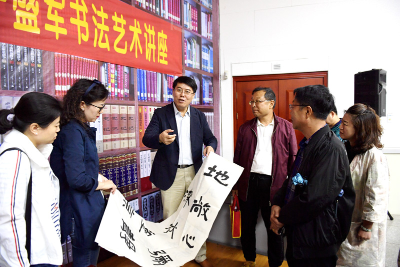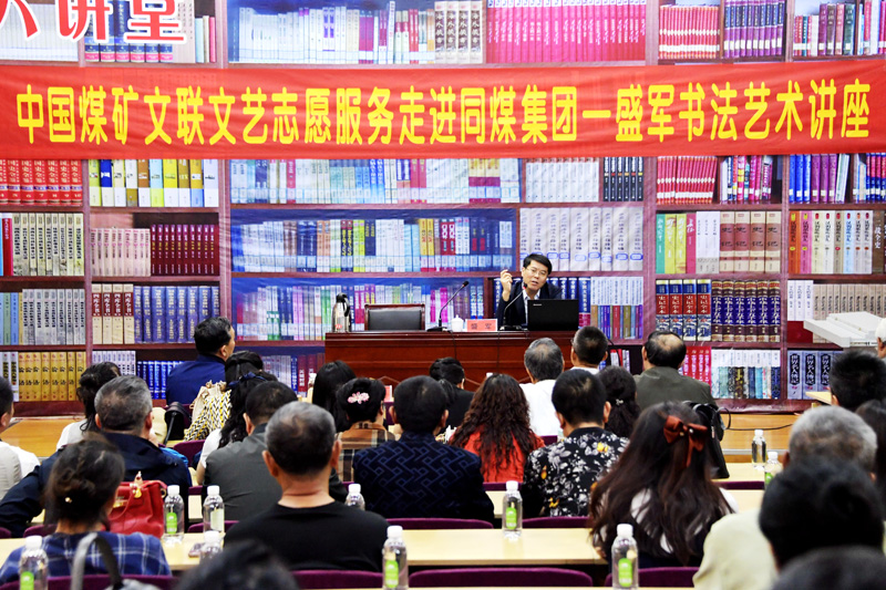 下午,文藝志愿服務兵分兩路。盛軍到同煤集團黨校進行書法藝術講座,其他志愿者與礦區書畫愛好者進行創作交流筆會。