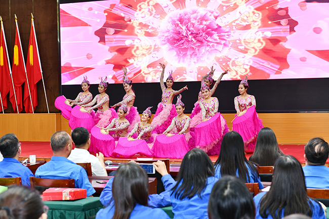 志愿者們表演了舞蹈《頂碗舞》《萬紫千紅》、女子獨舞《舞之韻》、男聲獨唱《古老的信天游》《桃花紅杏花白》《謝謝你朋友》《礦工好兄弟》、女聲獨唱《堅守》《一對對鴛鴦水上漂》、快板《看升旗》、相聲《歡聲笑語》等文藝節目……演出現場氣氛熱烈,不斷傳來陣陣叫好聲。志愿者們還熱情地走到職工之間牽手互動,職工們一邊樂得合不攏嘴,一邊還不忘拿起手機記錄和分享一個個精彩的舞臺演出瞬間。