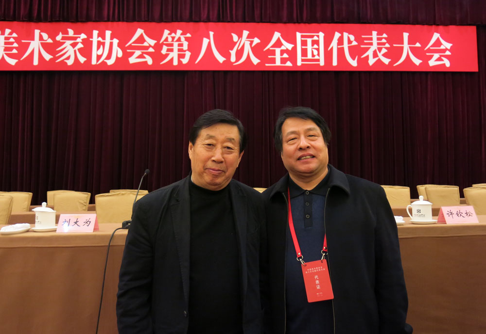 新當選的中國美協主席劉大為與煤礦美協主席吳鳳儀在會上合影