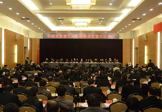 1月11日至12日,中國文聯第九屆全國委員會第六次會議在京召開。會議深入學習貫徹黨的十八大和十八屆三中全會精神,學習貫徹習近平總書記系列講話精神,學習貫徹全國宣傳思想工作會議和全國宣傳部長會議精神,總結去年工作,部署今年工作,進一步團結動員廣大文藝工作者為推動文藝事業繁榮發展,推動文聯工作改革創新,以優異成績迎接新中國成立65周年,為建設社會主義文化強國,實現中華民族偉大復興中國夢作出新貢獻。中國文聯主席孫家正主持會議,中宣部副部長黃坤明出席并講話。中國文聯黨組書記、副主席趙實在會上作了題為《努力唱響實現中國夢的時代最強音》的工作報告。