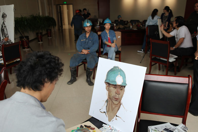 參加這次活動(dòng)的美術(shù)家大多沒有到過煤礦,礦山、礦工在他們的記憶中,離不開事故、危險(xiǎn)、臟黑、亂差等形象。為了爭(zhēng)取這次創(chuàng)作機(jī)會(huì),許多擔(dān)任美術(shù)學(xué)院教授、研究生導(dǎo)師的畫家,特地推遲了自己負(fù)責(zé)的美院研究生答辯、招生面試的時(shí)間,要求先到煤礦來寫生。