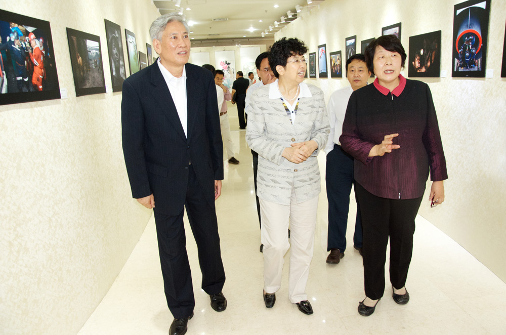 中國文聯黨組書記、副主席趙實,中國煤炭工業協會副會長、中國文聯全委、中國煤礦文聯主席梁嘉琨,中國煤礦文化宣傳基金會理事長、中國煤礦文聯副主席龐崇婭等領導一同觀看展出作品