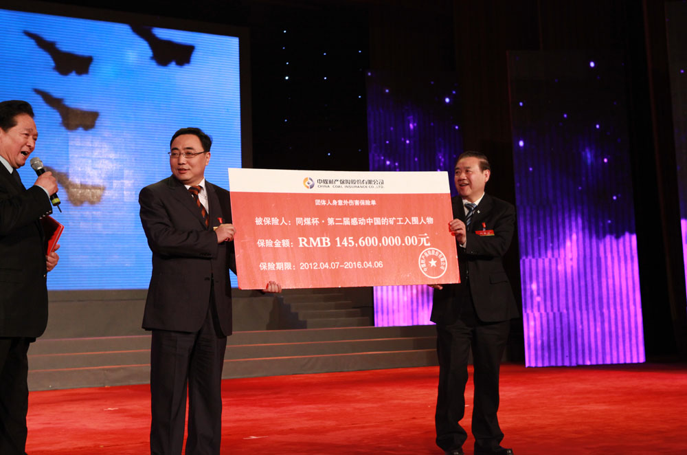 中煤財產(chǎn)保險公司向第二屆感動中國的百名礦工贈送保險