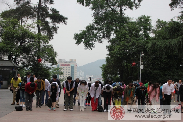 今年是遵義會議召開80周年,為緬懷革命先輩豐功偉績,弘揚中華傳統文化。5月21日,第六期全國文藝家高級研修班38位學員赴遵義紅軍烈士陵園。遵義紅軍烈士陵園,又名“紅軍山”,氣勢磅礴的紅軍烈士紀念碑座落于此,正面刻著鄧小平同志題寫的“紅軍烈士永垂不朽”八個大字,它紀念著紅軍烈士們的光輝歷史。肅穆莊嚴的氛圍中,學員們在紀念碑前向紅軍烈士敬獻花籃并三鞠躬以表達對他們的崇高敬意和懷念之情。