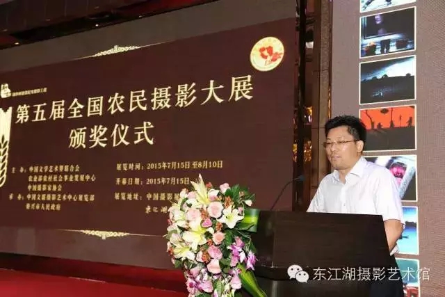 7月15日上午8點(diǎn)30分,由中國文學(xué)藝術(shù)界聯(lián)合會、中國攝影家協(xié)會聯(lián)合主辦,農(nóng)業(yè)部農(nóng)村社會事業(yè)發(fā)展中心、中國文聯(lián)攝影藝術(shù)中心展覽部、湖南省資興市人民政府共同承辦的“第五屆全國農(nóng)民攝影大展”頒獎儀式在資興市雄森豪庭酒店宴會廳A區(qū)和東江湖攝影藝術(shù)館隆重舉行;10點(diǎn)整,第五屆全國農(nóng)民攝影大展獲獎作品展覽開幕式在東江湖攝影藝術(shù)館舉行。