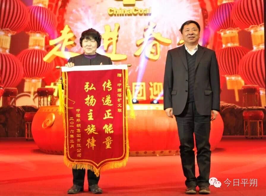 中煤集團總經(jīng)理助理、平朔集團公司執(zhí)行董事、黨委書記劉勇向中國煤礦文化宣傳基金會理事長、中國煤礦文聯(lián)副主席龐崇婭贈送了“傳遞正能量,弘揚主旋律”錦旗。