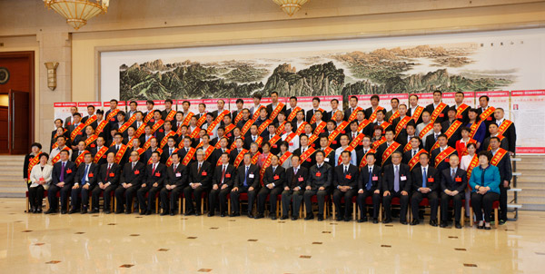 第三屆感動(dòng)中國的礦工與參加發(fā)布會(huì)的領(lǐng)導(dǎo)合影(高躍冬/攝)