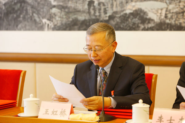 王虹橋宣讀中國煤炭工業協會關于煤礦文聯和基金會屆中調整領導機構成員的批復文件