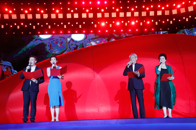 開幕式文藝晚會主持人(右起:瞿弦和、陳超、梁植、董帥)(攝影:張潔)