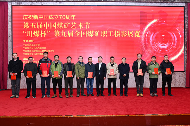 張強向川煤集團贈送了第五屆中國煤礦藝術節特別貢獻獎杯并代表第五屆中國煤礦藝術節組委會講話。他指出,多年來,一批批煤礦攝影人活躍在全國各礦區,穿梭在礦山和礦工之間,用鏡頭記錄著煤炭人生產生活發展變化的點點滴滴,煤炭行業的攝影家和攝影作品在全國全社會的影響力不斷擴大。他強調,作為新時代的煤礦文藝工作者,要緊密地團結在一起,守住為煤礦工人謀幸福的初心,擔起推動煤炭工業高質量發展的光榮使命,積極投身火熱的煤礦生產生活,堅定文化自信、把握時代脈搏、聆聽時代聲音,堅持與時代同步伐、以人民為中心、以精品奉獻人民、用明德引領風尚,切實肩負起新時代“培根鑄魂”的責任和使命,用優秀的文藝作品記錄新時代煤炭工業的輝煌發展成果,以實際行動慶祝偉大的新中國成立70周年。