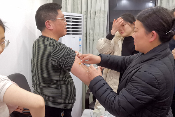 江西萍鄉礦業集團總醫院醫護人員出征前打預防針(攝影:龍紹華)