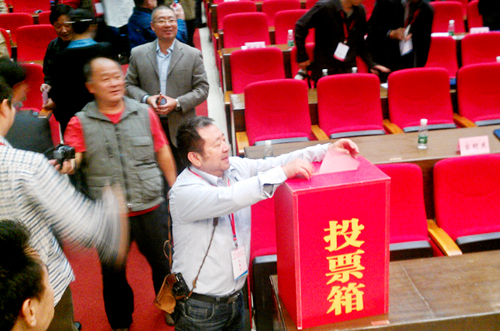 與會(huì)代表以無(wú)記名方式投票選舉會(huì)長(zhǎng)、副會(huì)長(zhǎng)