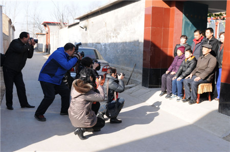 2015年元旦春節(jié)期間,山東省攝影家協(xié)會常務(wù)副主席田鳳仙帶領(lǐng)10余名攝影家赴平陰縣冷飯村,為百姓送上裝裱好的60余幅全村大合影、全家福,受到百姓們的熱烈歡迎和交口稱贊。