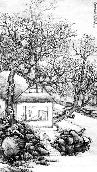 北京故宮博物院藏清黎嘉《秋喪讀書圖》(局部)