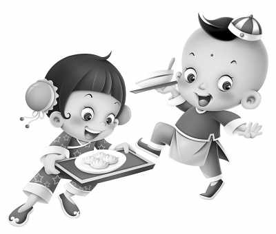 吃餃子餃與交同音。餃子由皮和餡制作,兩者包在一起,象征陰陽和諧、團聚交融。繪圖:劉閣爾