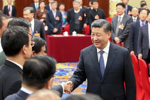 △2019年3月4日下午,中共中央總書記、國家主席、中央軍主席習近平看望參加全國政協十三屆二次會議的文化藝術界、社會科學界委員,并參加聯組會,聽取意見和建議。