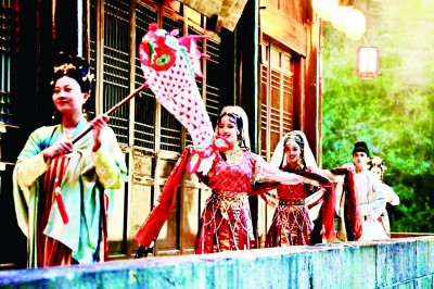 《七夕奇妙游》晚會,整個節目延續了河南衛視春晚的敘事脈絡,以三位“唐宮小姐姐”夜游洛陽的視角展開。她們穿梭在盛唐時期的洛陽城,一路上“遇見”諸多歷史人物和流行于當地的皮影戲、戲曲等傳統文化載體,還參與了七夕乞巧等傳統儀式。通過一個主線串起舞蹈《龍門金剛》、歌曲《給女孩》、戲曲《愛》、器樂演奏《破陣樂》和歌曲《為自己鼓掌》《夜空中最亮的星》,使一臺晚會節目如同一部兼具故事性、文化性、觀賞性的“影片”。