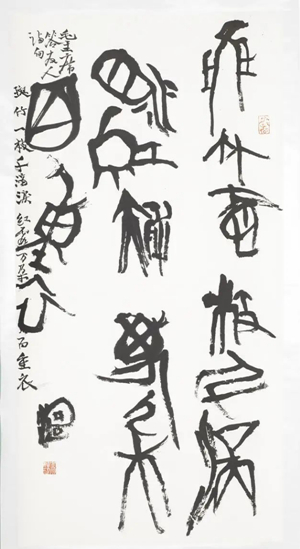 楊濤是當代著名書法家,是中國草書、篆書代表人物之一,他以獨特的眼光和才智創作出了一批具有個人風采和時代精神面貌的作品。此次展覽展出了楊濤20余幅書法作品,皆是創作精品。其筆下的鐵線篆筆筆圓潤、筆力遒勁、剛健婀娜,大篆厚重恣肆、線質扎實,不僅如此,他的草書以唐人狂草為本,兼及宋人草書韻致,取法高古,自有逸氣。