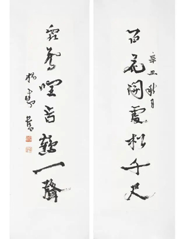 楊濤作品 《百花眾鳥聯》 68.5×17cm×2