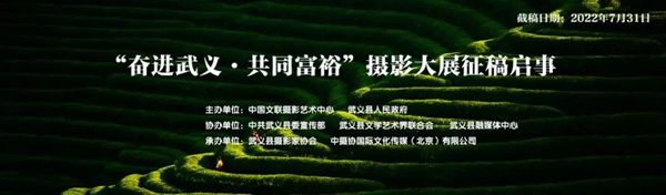 中國文聯(lián)攝影藝術中心、浙江省武義縣人民政府主辦此次活動,征集緊扣“奮進武義·共同富?!钡闹黝},多角度記錄武義縣范圍內(nèi)鞏固振興鄉(xiāng)村建設成果及特色農(nóng)產(chǎn)品、民宿農(nóng)家樂、民俗風情、自然風光等題材的攝影及短視頻作品。
