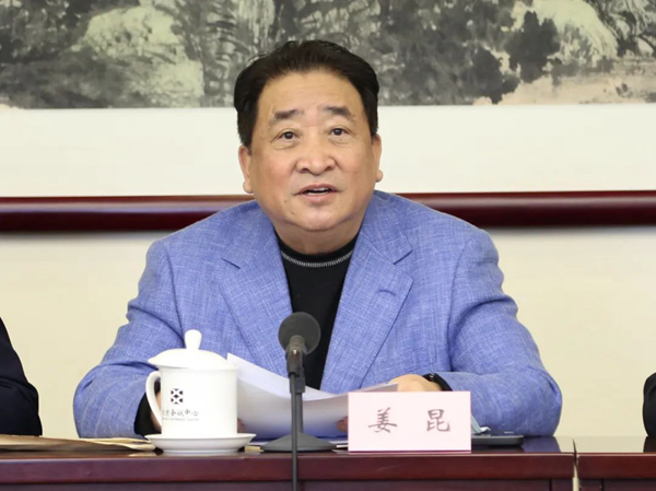 3月27日,中國文聯文藝工作者職業道德建設委員會2022年全體會議在京召開。圖為中國文聯文藝工作者職業道德建設委員會主任姜昆主持會議。
