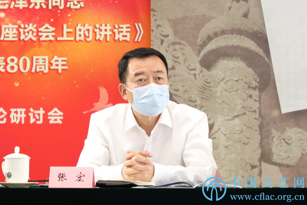 5月22日,中國(guó)文聯(lián)紀(jì)念毛澤東同志《在延安文藝座談會(huì)上的講話》發(fā)表80周年理論研討會(huì)在京召開(kāi)。圖為中國(guó)文聯(lián)黨組成員、書(shū)記處書(shū)記張宏出席會(huì)議。中國(guó)文藝網(wǎng) 李想 攝