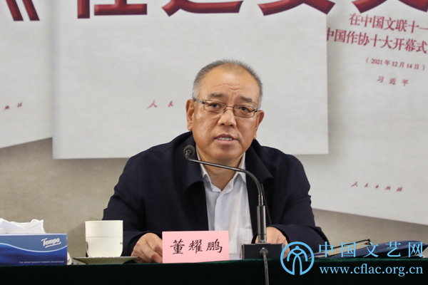 5月22日,中國(guó)文聯(lián)紀(jì)念毛澤東同志《在延安文藝座談會(huì)上的講話》發(fā)表80周年理論研討會(huì)在京召開(kāi)。圖為中國(guó)文聯(lián)黨組成員、副主席、書(shū)記處書(shū)記董耀鵬主持會(huì)議。中國(guó)文藝網(wǎng) 李想 攝
