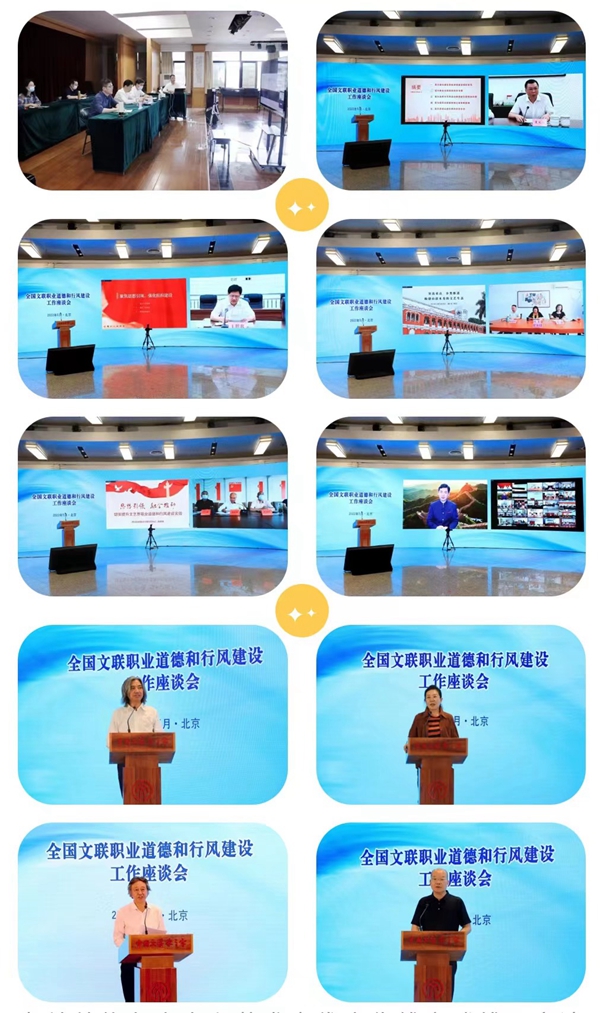 5月31日,全國文聯職業道德和行風建設工作座談會以線上線下相結合的方式召開。這是中國文聯首次召開職業道德和行風建設全國性專題會議,旨在深入學習貫徹習近平總書記在中國文聯十一大、中國作協十大開幕式上的重要講話精神,貫徹落實中宣部文娛領域綜合治理工作部署,對全國文聯行風建設及文娛領域綜合治理工作進行階段性回顧,對當前和今后一個時期職業道德和行風建設工作作進一步部署,以更加務實的舉措、更加積極的行動,引導廣大文藝工作者自覺追求德藝雙馨,營造山清水秀的文藝生態。