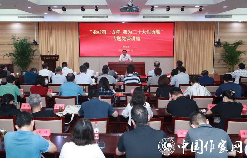 在“走好第一方陣 我為二十大作貢獻”的專題黨課上,張宏森以《走好第一方陣 綻放文學(xué)風(fēng)采 以實際行動迎接服務(wù)黨的二十大勝利召開》為題,對作協(xié)黨員干部如何“走好第一方陣”進行深刻闡釋,提出明確要求。張宏森指出,今年,我們黨將召開二十大,這是在進入全面建設(shè)社會主義現(xiàn)代化國家、向第二個百年奮斗目標進軍新征程上又一個重要的里程碑。迎接服務(wù)黨的二十大和學(xué)習(xí)貫徹黨的二十大精神,是今年黨和國家政治生活中的頭等大事,也是全黨工作的主線。中國作協(xié)作為貫徹落實黨的文藝路線方針政策、作為貫徹落實習(xí)近平總書記關(guān)于文藝工作重要論述和指示批示精神的“第一棒”,是具有鮮明政治屬性的人民團體,是踐行“兩個維護”的第一方陣。我們要按照黨中央要求,不斷提高政治能力、加強政治歷練,把政治判斷力、政治領(lǐng)悟力、政治執(zhí)行力體現(xiàn)到履職盡責(zé)的實際行動上,不斷增強作協(xié)組織政治性、先進性、群眾性,扎扎實實走好踐行“兩個維護”和貫徹落實黨中央決策部署的“最先一公里”,努力營造平穩(wěn)健康的經(jīng)濟環(huán)境、國泰民安的社會環(huán)境、風(fēng)清氣正的政治環(huán)境,為黨的二十大勝利召開貢獻文學(xué)力量。