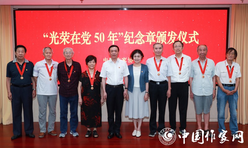 6月29日,中國作協(xié)在京開展“七一”主題黨日活動,向中國作協(xié)“光榮在黨50年”的老黨員代表頒發(fā)紀念章