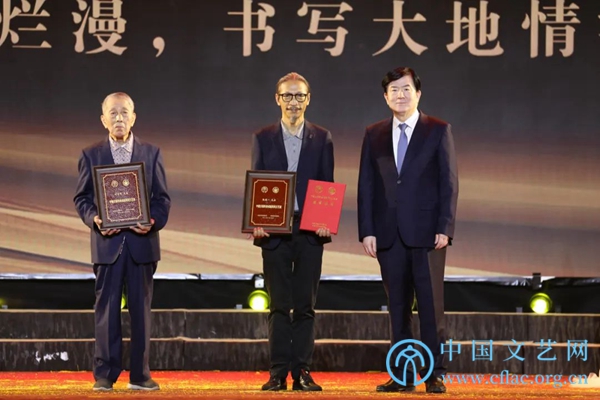 頒獎典禮上,中國文聯黨組書記、副主席李屹為劉守華、張道一(家人代領)兩位德高望重、貢獻突出的老先生頒發“中國文聯終身成就民間文藝家”榮譽稱號,以表彰他們畢生致力于中國民藝學、中國故事學所作出的開拓性貢獻。