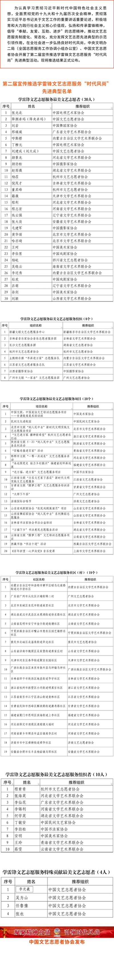 第二屆宣傳推選學雷鋒文藝志愿服務“時代風尚”先進典型名單公布